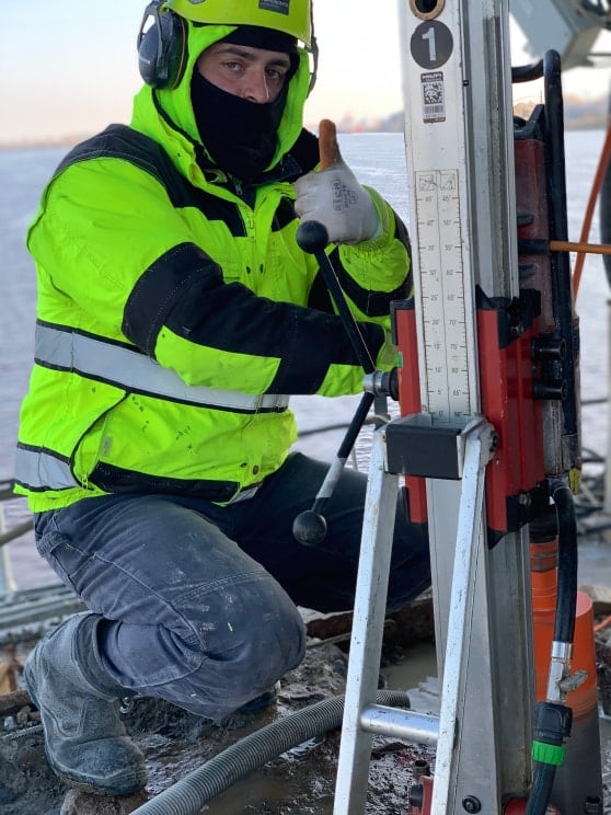 В октябре 2020 года нами выполнено два выезда в Архангельск для производства работ по алмазному бурению в опорах Северодвинского моста.
